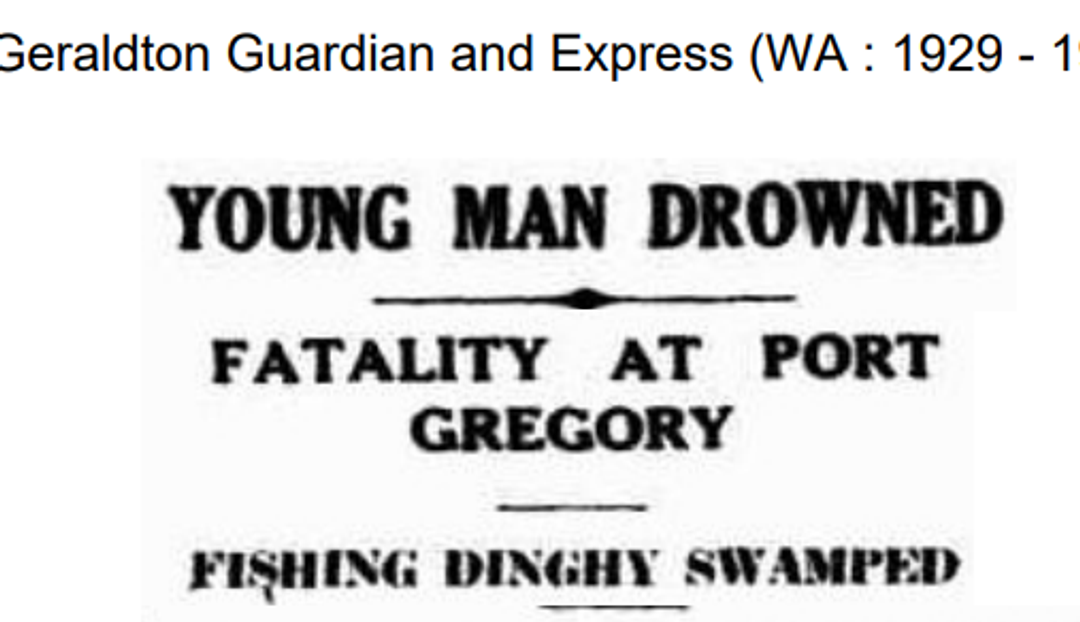 On Sunday 21 May 1939, a group of young men went to Port Gregory to catch snapper. They were Clement Charles Lander, Alexander Thornton, Sydney Harold Bucket, Lachlan John Williams and Alistair Bowes Williams.