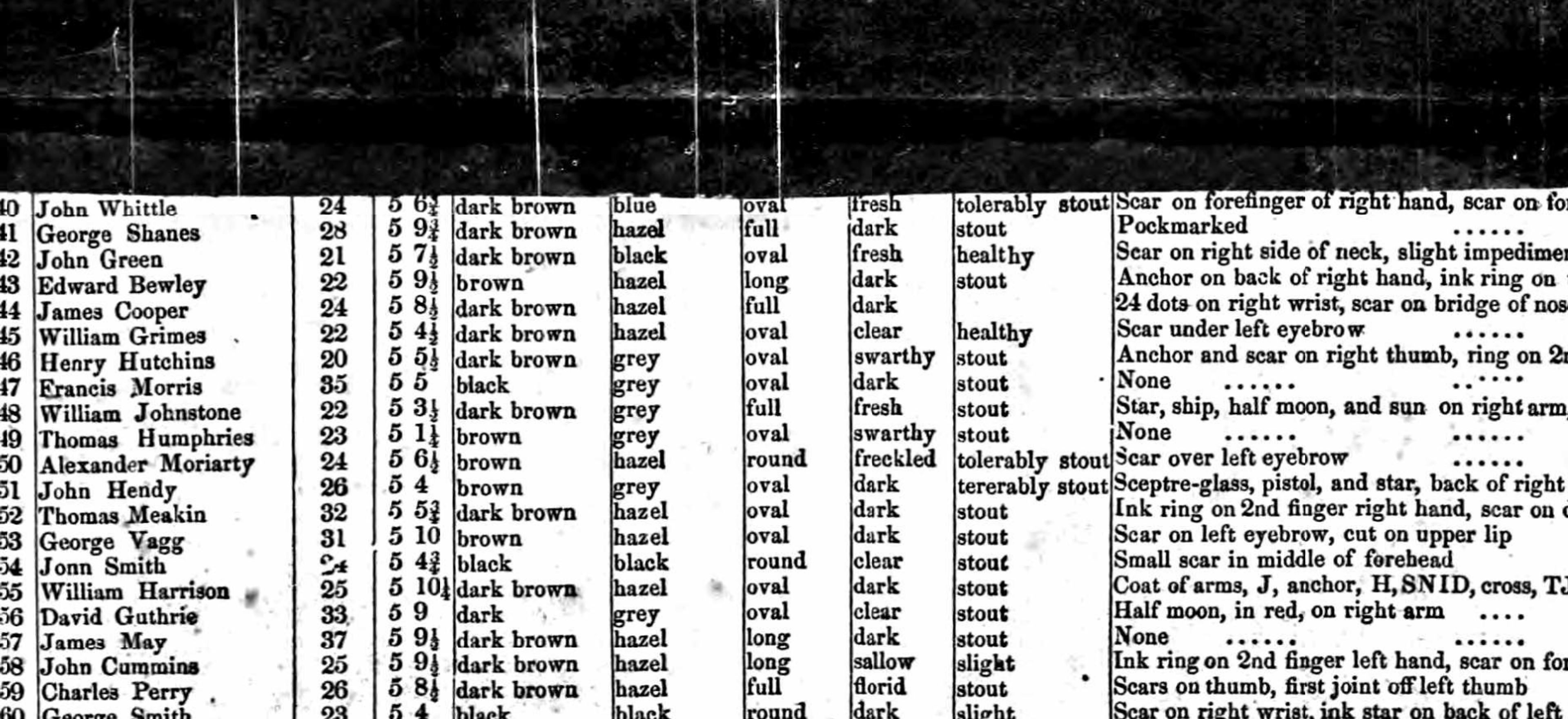 Edward’s records indicate he was 5ft 9inches and was stout. He had an anchor tattooed onto the back of his right hand, and finger tattoos on both hands. His occupation was iron and brass fitter.