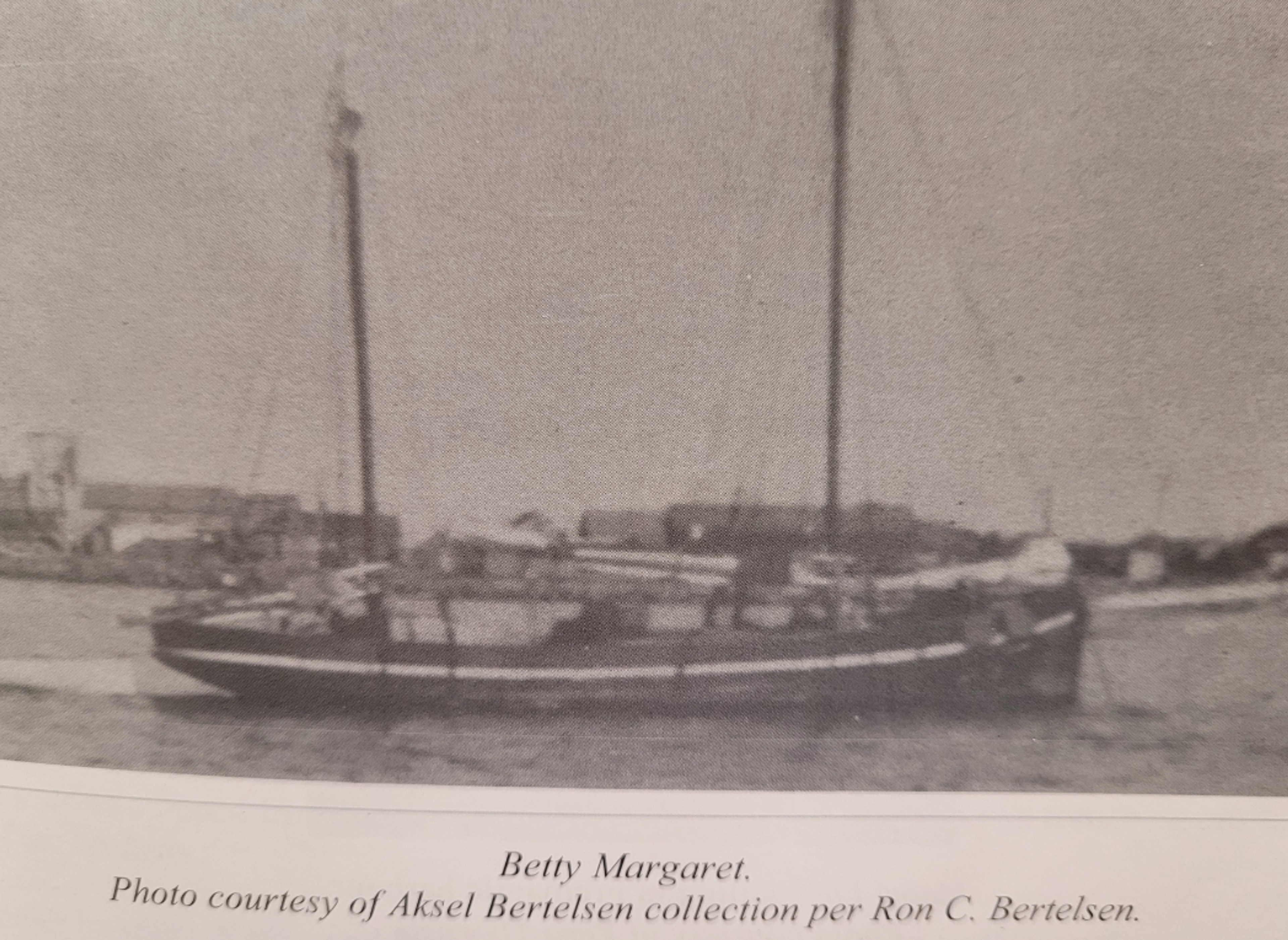 Betty Margaret was a 41 ft [12.5 m] pearling lugger Big Fred and Erik found in Onslow. She was built in 1912 by George Cooper in Claremont as a two masted (fore and aft) schooner. She had a 15 ft [4.5 m] beam, carried a 1000lb [453.5 kg] ice box and was run by a 36 hp motor. Betty Margaret had two launches, an 18 ft [5.4m] of Big Fred’s and a 15 ft [4.5m] belonging to Erik.