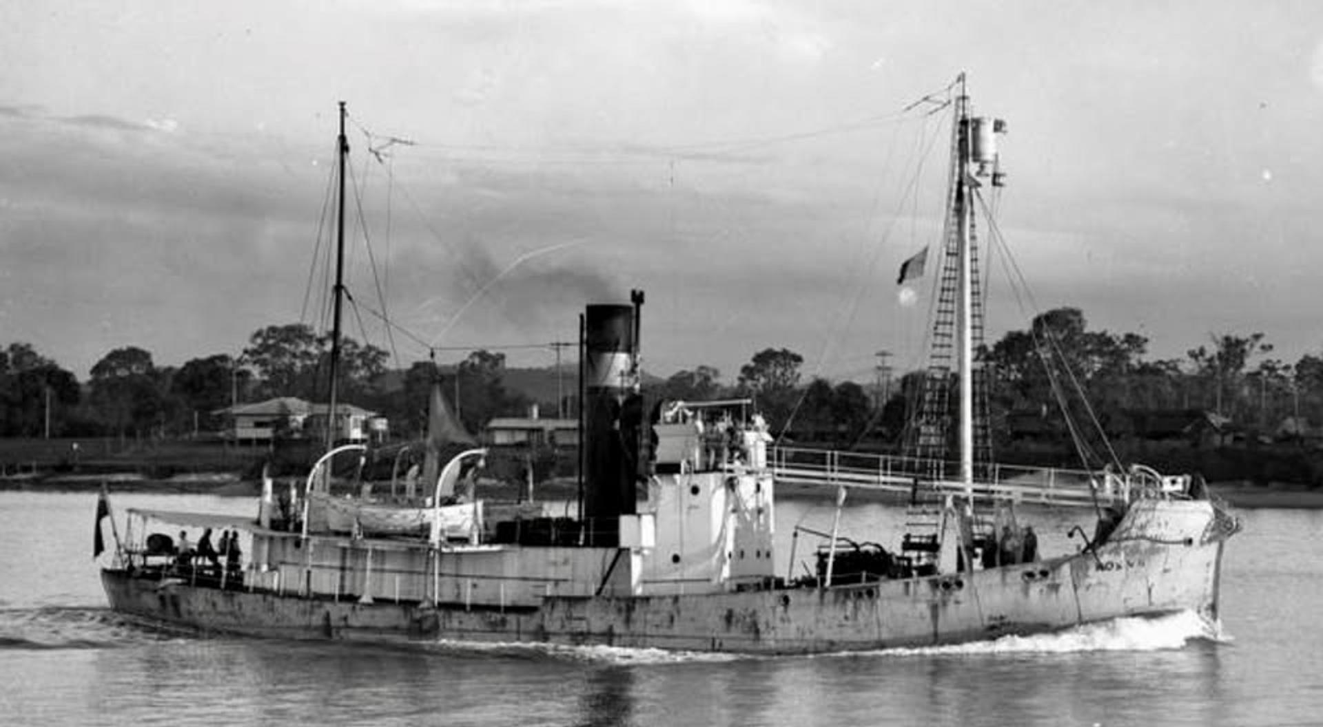 John had been transferred to Kos II, a steamboat with 248 gross tons. She measured 35.3 metres in length, and 7.3 metres across her beam She drew 3.9 metres of water. She had a steel hull and a three-cylinder oil-fired triple expansion engine, a single shaft and screw. The crew answered to Captain Mikkelson of the Ulysses, Captain Hansen as manager of the factory aboard, and Captain Melson as the West Australian representative of the whaling company.