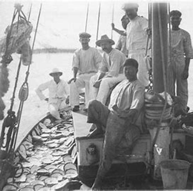 On 11 May 1914 Eleanor B278 was working in 33 fathoms of water approximately 23 kms off Wallal in a fleet of 100 pearl boats. Another 100 boats were working off Mangrove Point. There was a southerly wind and a light tide when the boats started work. Eleanor’s master and shell opener was Richard Eliott Palmer Chapman. He had a Japanese diver and try diver, and seven Malay tenders aboard.