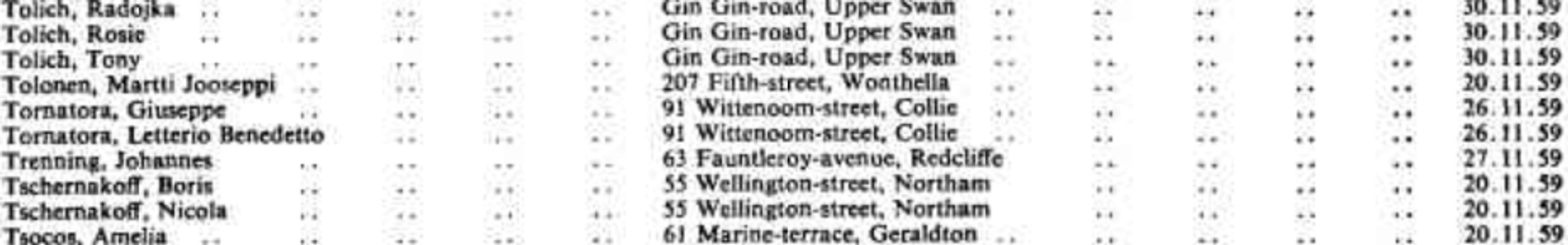 Specifically, he was living at 207 Fifth Street, Wonthella, a suburb of Geraldton, and he had become a cray fisherman. Wonthella was a popular place for fishing, farming and immigrant families because the house blocks were large and could accommodate boat building, equipment storage and large vegetable gardens.