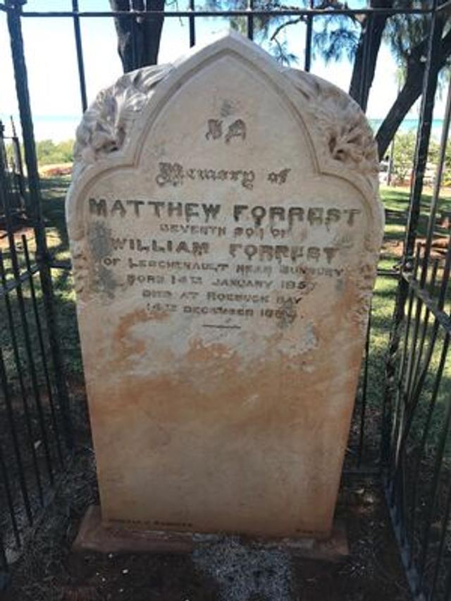 Matthew was buried in the Seafarers’ Cemetery overlooking the harbour. He has been joined by just a handful of celebrated Broome residents. The area has been preserved as the Broome Pioneer Cemetery. Pemberton Walcott, Inspector of Fisheries was the first to be buried there in 1883 and Matthew was the second.